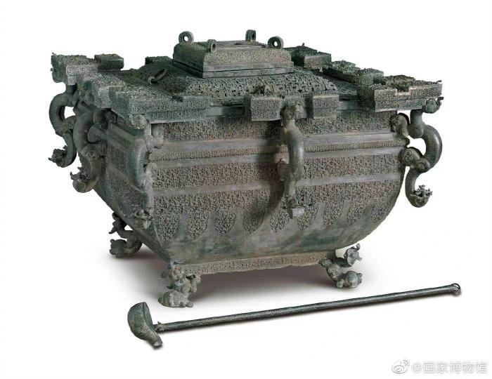 比如人們熟悉的“青銅冰鑒”,它是由一個(gè)方鑒和一件方尊缶組成的青銅套器,與之配套的還有一把長(zhǎng)柄青銅勺。從造型上看,該青銅冰鑒結(jié)構(gòu)精巧,體態(tài)厚重。