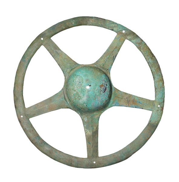 三星堆出土文物中,青銅太陽輪形似如今的“方向盤”,其用途引來了種種猜測(cè):有研究者認(rèn)為這是車輪,還有觀點(diǎn)認(rèn)為是用于軍事作戰(zhàn)的盾牌上的盾飾。多數(shù)意見認(rèn)為,這種形制的器物應(yīng)即是“太陽形器”。它是常設(shè)在古蜀國神廟中的神器,或用于祭祀儀式。