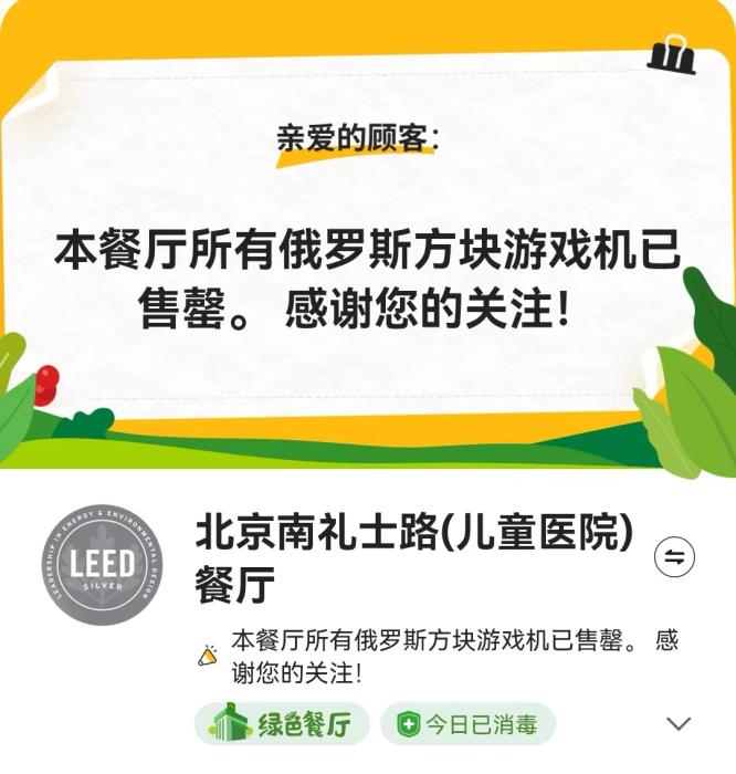 據(jù)麥當(dāng)勞介紹,活動(dòng)期內(nèi)下單購(gòu)買(mǎi)任意產(chǎn)品,額外加30元即可獲得俄羅斯方塊游戲機(jī)一個(gè),全國(guó)限量40萬(wàn)個(gè)。但當(dāng)日就有不少人表示,已經(jīng)買(mǎi)不到麥當(dāng)勞游戲機(jī)。記者25日登錄麥當(dāng)勞APP,北京多個(gè)門(mén)店亦顯示俄羅斯方塊游戲機(jī)已售罄。