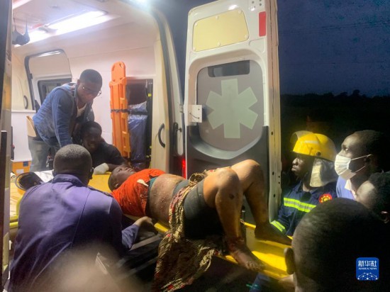 5月30日,救援人員在加納中部省大客車與油罐車相撞事故現(xiàn)場搶救傷者。新華社發(fā)