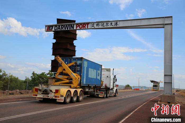 從澳大利亞北領地達爾文市往東驅車17公里便抵達號稱“通往亞洲的大門”的達爾文港。穿過用鋼鐵搭建的有中文標注著“嵐橋達爾文港”的大門便是港口貨物作業(yè)區(qū)。