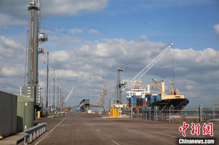 記者在港區(qū)看到,港區(qū)堆滿集裝箱,一臺懸吊機械正在往輪船上吊裝有中文字樣的中海運集裝箱,港區(qū)內海上補給中心的幾艘輪船正在進行補給,散貨堆場內成堆的鋰礦正在等待裝船出口中國,碧波蕩漾的城市郵輪碼頭已初具規(guī)模。