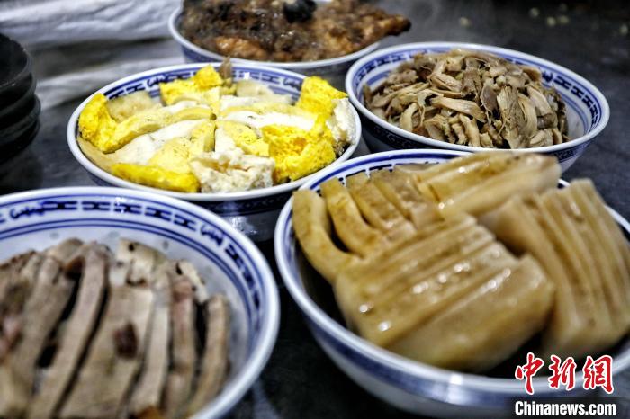 “澆頭決定了菜品味道?!庇诔窀嬖V記者,澆頭多以肥雞、肥鴨、豬肘為主料,輔以各種佐料,醬油、醋、木耳、香菜等搭配融合,熱氣騰騰的澆頭就出鍋了,“清澈見底,味鮮而醇,既可做湯菜,又能做提鮮的調(diào)味料”。