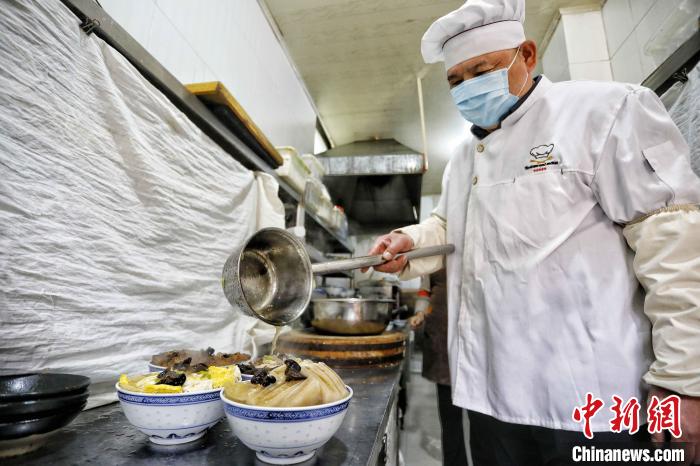 2023年2月,“四八席”廚師將熬好的老湯澆到每道菜上?!£愱?攝