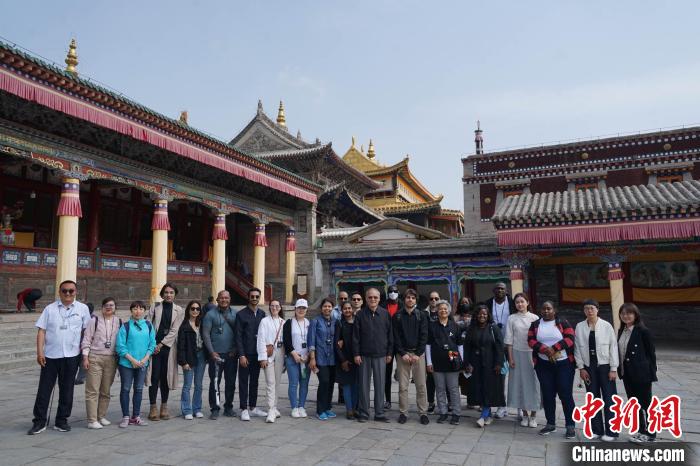 圖為外國(guó)記者團(tuán)在塔爾寺合影?!●R銘言 攝
