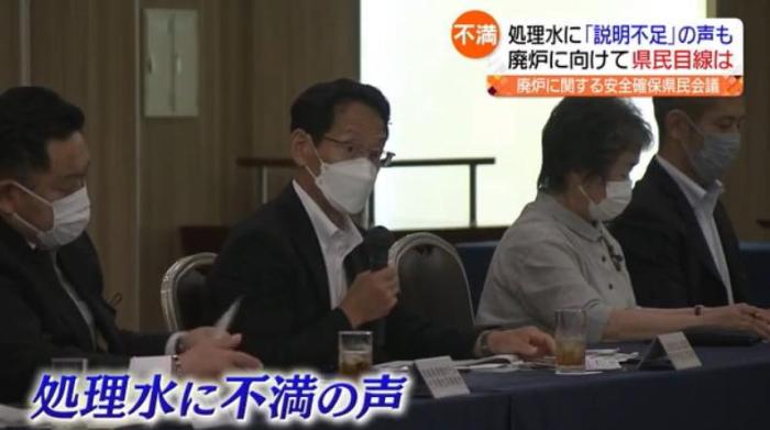 當(dāng)?shù)貢r(shí)間13日下午,日本福島縣民眾召開會(huì)議,參加者針對(duì)日本政府計(jì)劃在今夏正式向大海排放核污水一事表示不滿。圖片來源:福島中央電視臺(tái)視頻截圖
