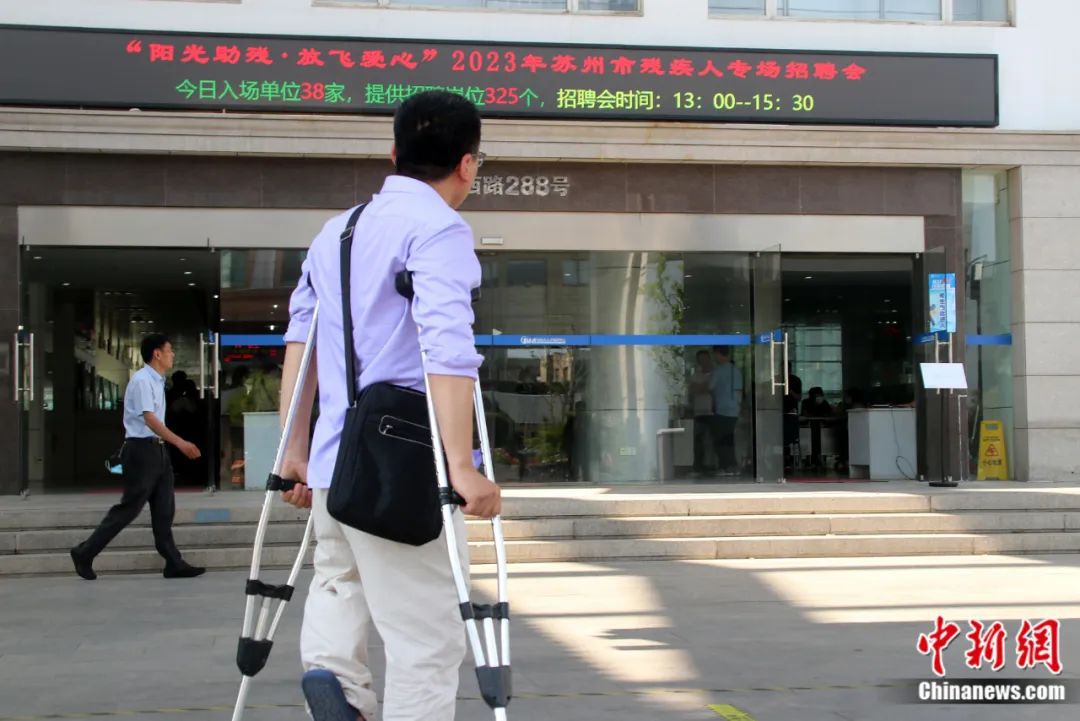 求職者在蘇州市殘疾人專場(chǎng)招聘會(huì)上尋找職位。王建康 攝