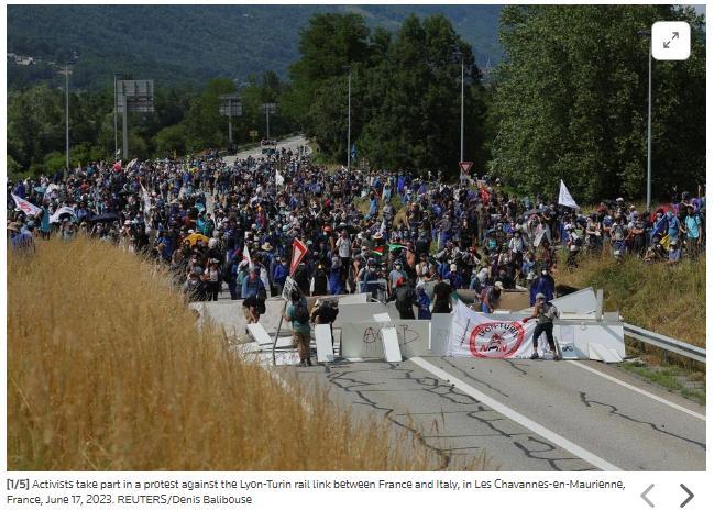 據(jù)報(bào)道,當(dāng)天,大約2000名抗議者聚集在阿爾卑斯山地區(qū)的莫里耶訥河谷,反對當(dāng)局在當(dāng)?shù)匦藿ǜ哞F。據(jù)介紹,這條高鐵計(jì)劃連接法國里昂和意大利,線路途經(jīng)阿爾卑斯山地區(qū)。