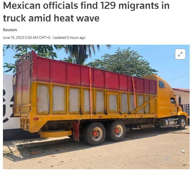 據(jù)報道,移民當(dāng)局表示,他們在一輛卡車內(nèi)發(fā)現(xiàn)了這些移民,事發(fā)地近日正遭受熱浪侵襲,當(dāng)天的室外溫度已達到45攝氏度。