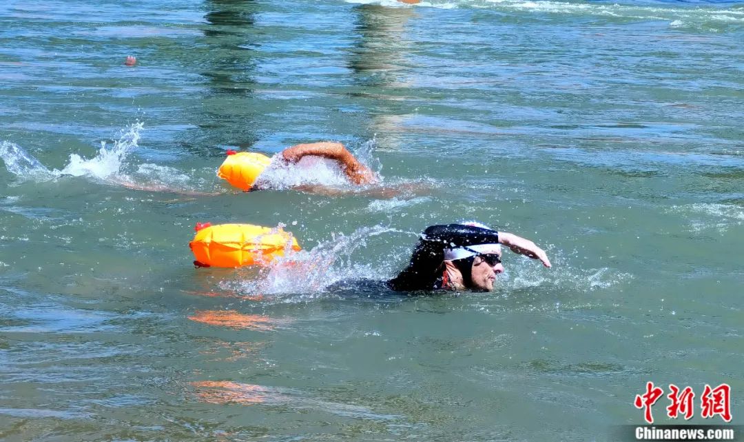 2022年7月,來(lái)自德國(guó)、美國(guó)、英國(guó)、比利時(shí)、俄羅斯等20個(gè)國(guó)家和地區(qū)的211名運(yùn)動(dòng)員和競(jìng)技愛(ài)好者,在青海省黃河上游水域參加搶渡黃河極限挑戰(zhàn)賽。李雋 攝