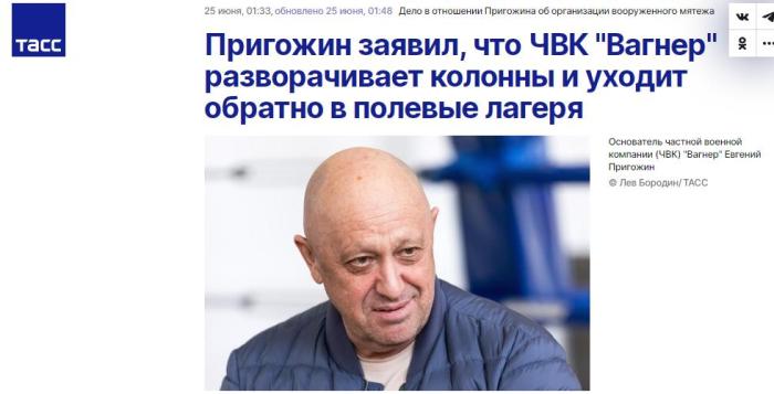 另據(jù)俄新社稍早前報道,24日,白俄羅斯總統(tǒng)盧卡申科與普里戈任進行了交流,普里戈任接受了盧卡申科關(guān)于停止“瓦格納”在俄行動,以及采取措施緩和緊張局勢的建議。