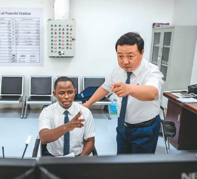 毛鑫是非洲之星鐵路運(yùn)營公司運(yùn)輸部內(nèi)羅畢車站運(yùn)轉(zhuǎn)主任,他與徒弟彼得·恩堅加一起制定調(diào)度計劃、調(diào)控列車運(yùn)轉(zhuǎn)?!拔覀儫o保留地把國內(nèi)的技術(shù)標(biāo)準(zhǔn)帶到肯尼亞,學(xué)員已達(dá)到國內(nèi)車站同等作業(yè)標(biāo)準(zhǔn)?!泵握f,幫助肯尼亞建設(shè)第一條現(xiàn)代化鐵路,是他人生中的亮點。彼得表示,自己從師父身上學(xué)到了許多專業(yè)技術(shù),未來他將把知識傳授給更多人。