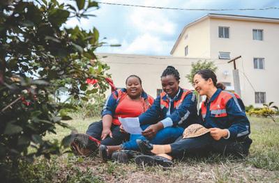 中國師父陳玲(右)是非洲之星鐵路運(yùn)營公司工電部電子設(shè)備檢修工區(qū)工長。在肯尼亞工作4年來,她見證了女學(xué)員們電務(wù)技術(shù)的成長。“現(xiàn)在她們都能獨當(dāng)一面?!标惲嵴f。朱迪思(左)是陳玲的學(xué)員之一,她從師父那里獲得的不僅是技術(shù),工作間隙對飲食、文化等多維度的交流同樣讓她受益匪淺?!拔覀冎g是師徒,更是姐妹?!敝斓纤颊f。圖為陳玲在休息時教學(xué)員唱中文歌曲。