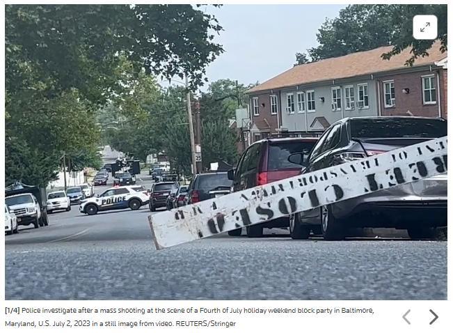 當?shù)貢r間7月2日凌晨,美國馬里蘭州巴爾的摩的一場社區(qū)派對結束后,發(fā)生了大規(guī)模槍擊事件,造成2人死亡,28人受傷,其中包括14名未成年人。圖片來源:路透社報道截圖