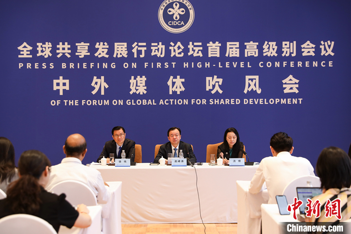 7月4日,全球共享發(fā)展行動(dòng)論壇首屆高級(jí)別會(huì)議中外媒體吹風(fēng)會(huì)在北京舉行。針對(duì)有觀點(diǎn)認(rèn)為西方國(guó)家與發(fā)展中國(guó)家看待全球發(fā)展倡議的視角不同,對(duì)全球發(fā)展倡議的評(píng)價(jià)也不同,中國(guó)國(guó)家國(guó)際發(fā)展合作署副署長(zhǎng)趙峰濤(中)在北京回應(yīng)指出,全球發(fā)展倡議面向全球,無(wú)分南北。倡議是開(kāi)放、包容的,不能用狹隘的地緣政治、冷戰(zhàn)思維、陣營(yíng)對(duì)抗理念來(lái)解讀。 中新社記者 趙雋 攝