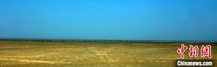 在海市蜃樓觀測點,沙漠上出現一片湖面,隱約能看到湖面上波光粼粼,水波隨風翻滾。 孜瓦爾古麗·卡德爾 攝