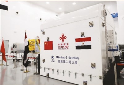 中國(guó)政府援助埃及二號(hào)衛(wèi)星初樣星交付儀式6月25日在埃及航天城衛(wèi)星總裝集成測(cè)試中心舉行。此次交付使埃及成為首個(gè)具備衛(wèi)星總裝、集成和測(cè)試能力的非洲國(guó)家。圖為交付儀式現(xiàn)場(chǎng)。