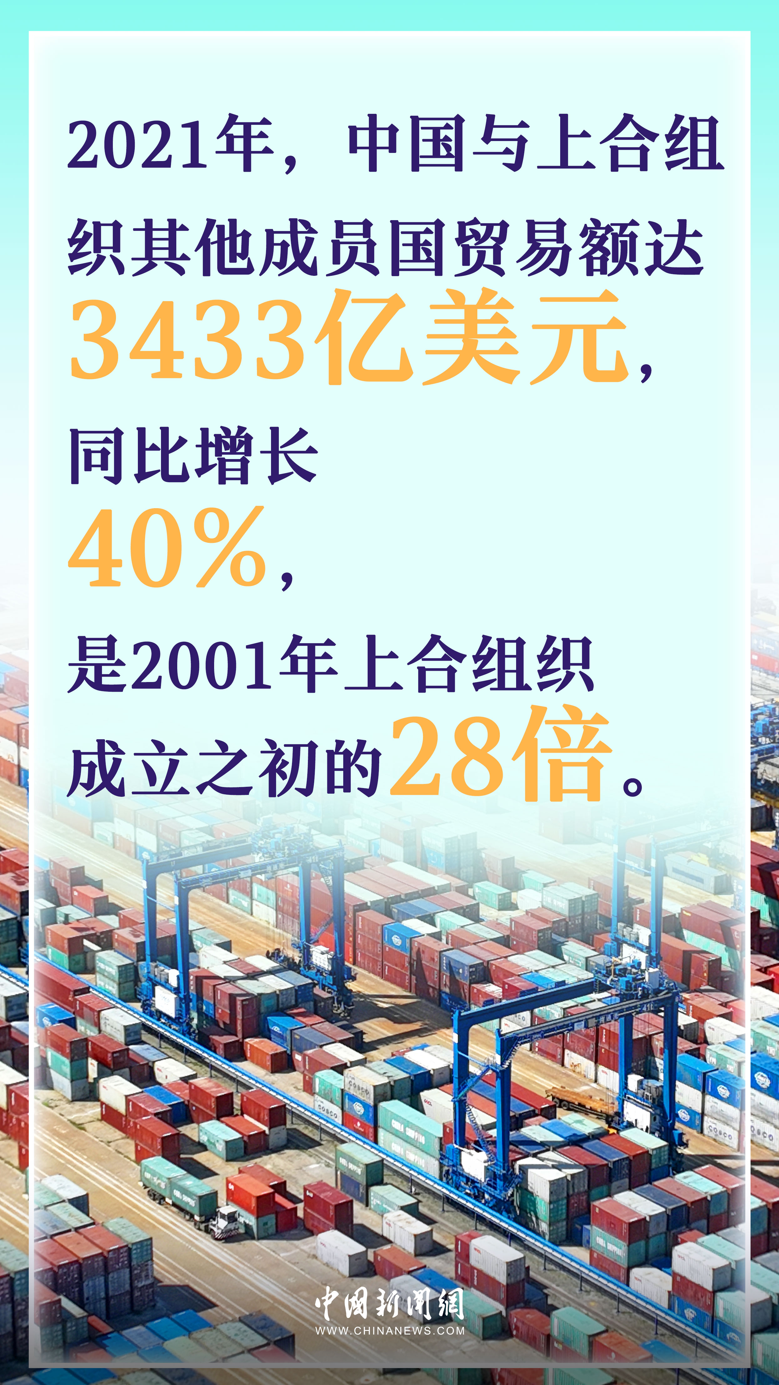 據(jù)統(tǒng)計(jì),2021年,上合組織成員國(guó)國(guó)內(nèi)生產(chǎn)總值總和約為23.3萬(wàn)億美元,占全球GDP近四分之一,比成立之初擴(kuò)大了13倍多。其中,中國(guó)的作用也在日益凸顯,同年,中國(guó)與上合組織其他成員國(guó)貿(mào)易額達(dá)3433億美元,同比增長(zhǎng)40%,是2001年上合組織成立之初的28倍。