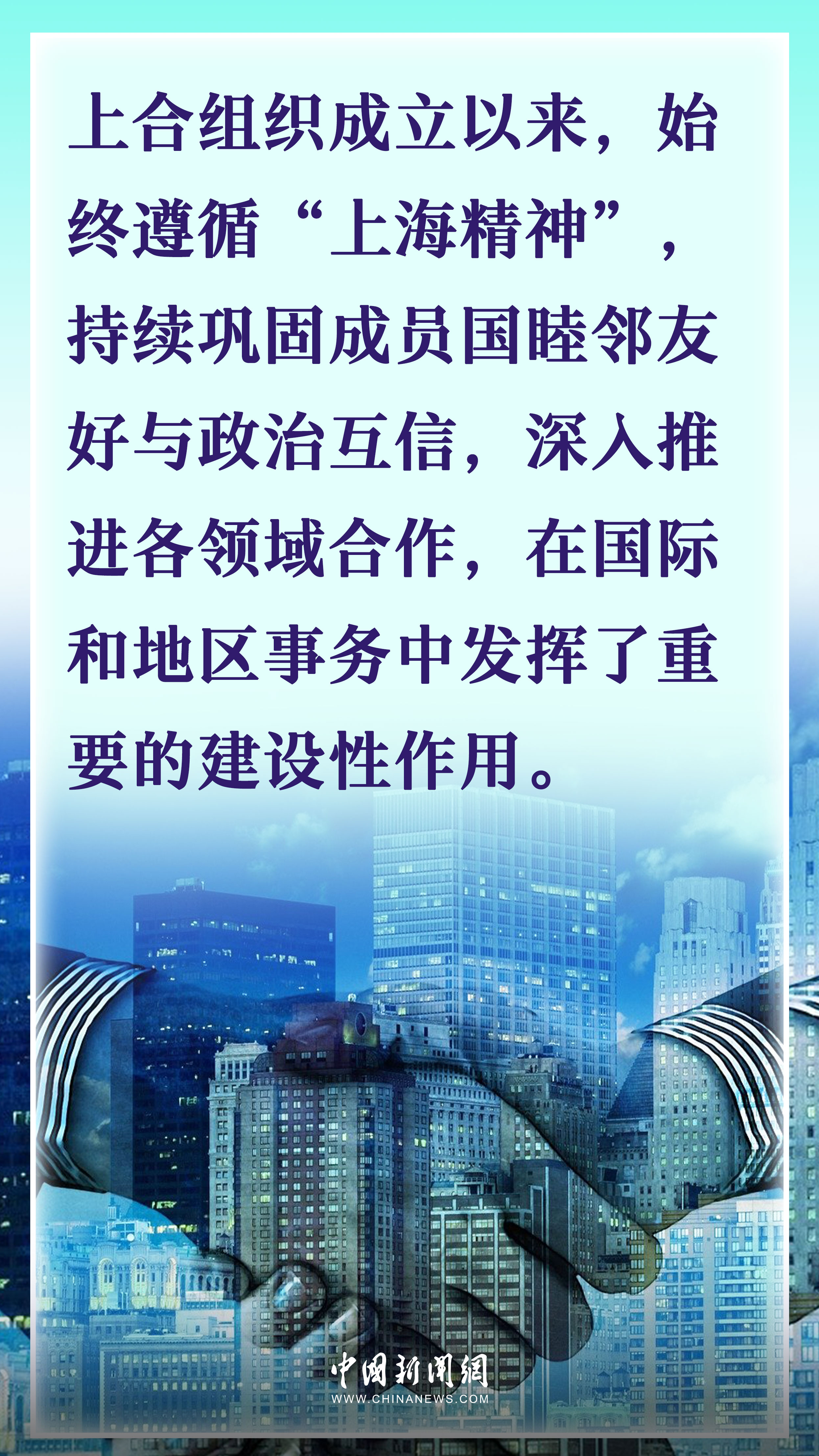 成立以來(lái),上合組織始終遵循“上海精神”,持續(xù)鞏固成員國(guó)睦鄰友好與政治互信,深入推進(jìn)各領(lǐng)域合作,在國(guó)際和地區(qū)事務(wù)中發(fā)揮了重要的建設(shè)性作用。