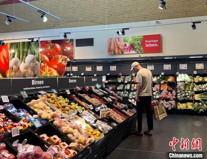 圖為11日,顧客在德國柏林某超市選購水果?!≈行律缬浾?馬秀秀 攝