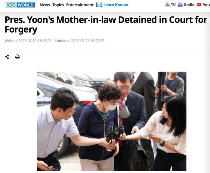 韓聯(lián)社指出,現(xiàn)任總統(tǒng)的岳母當庭被捕,在韓國憲政史上尚屬首次。