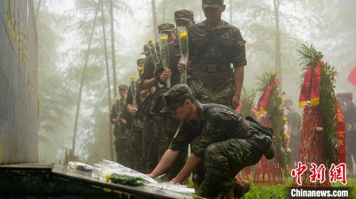 官兵徒步行軍至武夷山市洋莊鄉(xiāng)小漿村張山頭無名紅軍烈士墓群,開展“追尋紅色印記、賡續(xù)紅色血脈”參觀見學(xué)活動。中新社記者 張麗君 攝