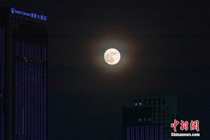 資料圖:一輪“超級(jí)月亮”現(xiàn)身南京上空。中新社記者 泱波 攝