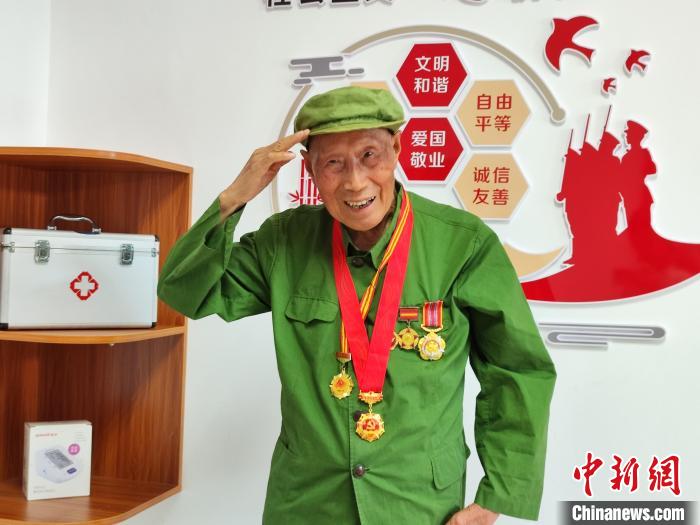 中新網(wǎng)贛州8月1日電 (熊錦陽)整理好軍裝,佩戴上勛章,8月1日清晨,老兵王益民就已洗漱完畢,對他而言,今天是一個重要的日子。早上6點15分,通過直播,王益民聚精會神地觀看著南昌八一廣場上舉行的升旗儀式,隨著五星紅旗緩緩升起,這位93歲的抗美援朝老兵迅速立正抬手,向著鮮艷的國旗做了一個標準的軍禮……