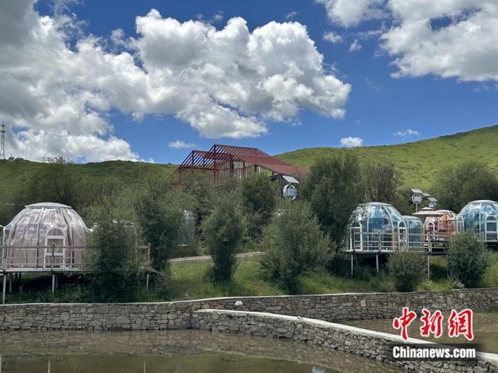 在園區(qū)內(nèi),除了大面積的草場,還能看見一些臨水而建、顏色各異的圓形房間。王春貴介紹稱,那是供游客休閑的星空房。目前,紅原牦?,F(xiàn)代農(nóng)業(yè)園區(qū)正朝著牧旅融合的道路發(fā)展,咖啡屋、星空房等休閑設(shè)施以及牧旅融合體驗區(qū)已初步建設(shè)完成?!叭拷ǔ梢院螅慰瓦€能在園區(qū)內(nèi)體驗牦牛喂養(yǎng)?!蓖醮嘿F說。