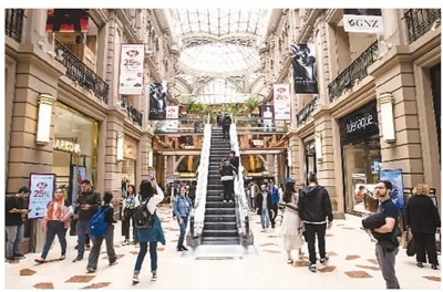 人們在阿根廷首都布宜諾斯艾利斯佛羅里達大街上的一座購物中心內(nèi)游覽。