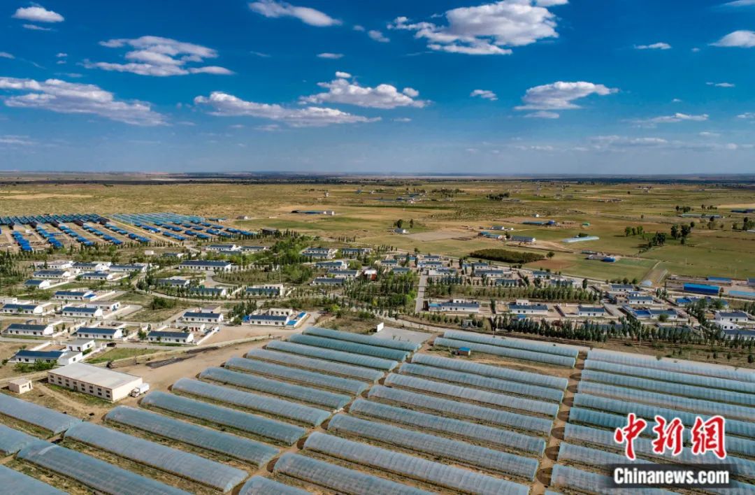 2023年6月3日拍攝的鄂爾多斯市鄂托克前旗敖勒召其鎮(zhèn)馬場井村易地搬遷集中安置點(diǎn)。王正 攝