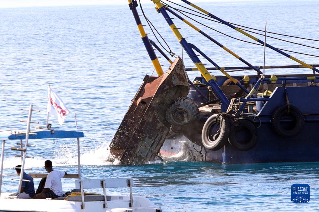 8月3日,在埃及胡爾加達附近水域,一輛廢棄的裝甲車被沉入海底特定區(qū)域。