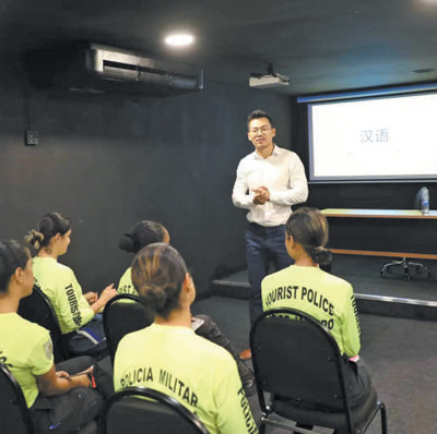 為更好地保障中國游客安全,里約旅游警察局和中國駐里約總領(lǐng)事館合作推出的里約旅游警察中文培訓(xùn)班日前正式開班。該培訓(xùn)班分為10個課時,由里約天主教大學(xué)孔子學(xué)院的教師授課。當(dāng)?shù)鼐瘑T丹妮爾·克雷斯說,中國游客將為推動里約經(jīng)濟(jì)發(fā)展發(fā)揮重要作用,“我愿與同事一起為保障游客安全、促進(jìn)巴中人民友好往來貢獻(xiàn)力量。”