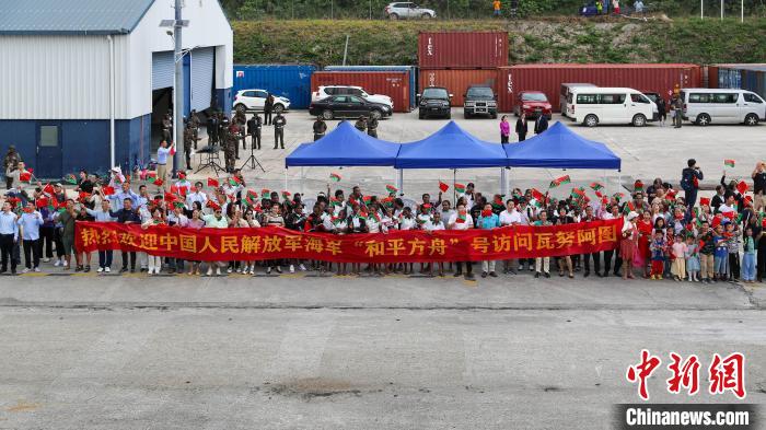 上午10時許,和平方舟緩緩靠抵維拉港主碼頭。瓦方在碼頭舉行了隆重的歡迎儀式,“和諧使命-2023”任務指揮員檢閱瓦儀仗隊,當?shù)孛癖娤蚱浍I上傳統(tǒng)飾物,并表演傳統(tǒng)歡迎舞蹈。瓦努阿圖總理卡爾薩考等政要,中國駐瓦努阿圖大使李名剛及使館工作人員,當?shù)孛癖?、華僑華人、援瓦醫(yī)療隊和中資機構(gòu)代表等在碼頭迎接。