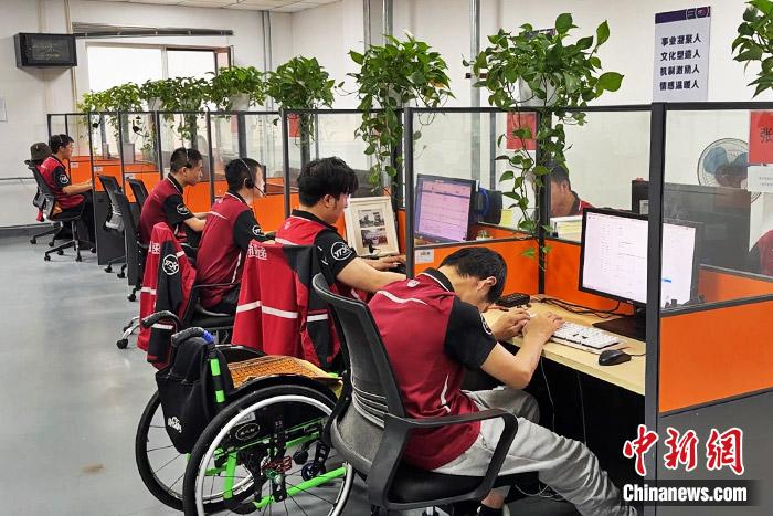 殘疾員工在圓通速遞從事客服工作。中新財經(jīng) 吳家駒 攝