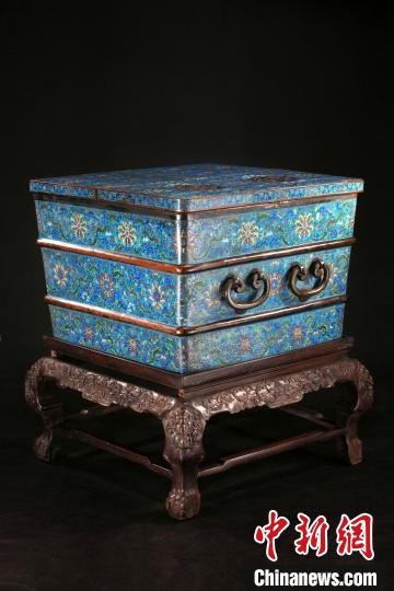 沈陽故宮院藏的清乾隆款掐絲琺瑯寶相花大冰箱,內部為錫板里,內加隔層木板,放入天然冰可使食品保鮮?!?沈陽故宮博物院供圖)