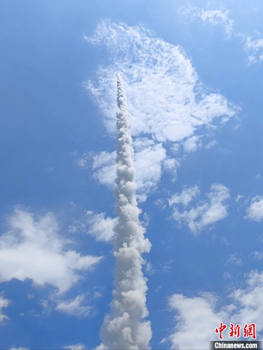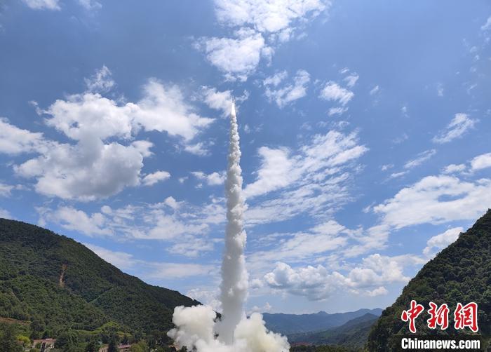 8月14日13時(shí)32分,中國(guó)在西昌衛(wèi)星發(fā)射中心使用快舟一號(hào)甲固體運(yùn)載火箭,以“一箭五星”方式將和德三號(hào)A至E星等5顆衛(wèi)星發(fā)射升空,衛(wèi)星順利送入預(yù)定軌道,發(fā)射任務(wù)獲得圓滿成功。中新社發(fā) 胡煦劼 攝