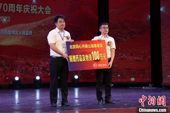 此次健康公益活動由北京同心共鑄公益基金會主辦?;顒诱陳圯x區(qū)新生鄂倫春族鄉(xiāng)鄂倫春族同胞下山定居70周年,受愛輝區(qū)委區(qū)政府邀請,北京同心共鑄公益基金會攜醫(yī)務志愿者、社會愛心人士參加了當?shù)嘏e辦的相關慶?;顒?。其間,基金會向愛輝區(qū)捐贈價值100萬元人民幣的藥品及物資,基金會秘書長殷延志獲評為助力愛輝區(qū)鄂倫春族發(fā)展“貢獻杰出人物”。