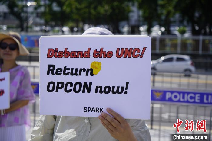 21日上午,韓國民間團體“和平統(tǒng)一開創(chuàng)者”在韓國總統(tǒng)府前的空地集會。有市民手舉“中斷韓美軍事演習”“立即收回戰(zhàn)時作戰(zhàn)指揮權(quán)”“反對北約成員國軍事介入朝鮮半島”等標語,呼吁韓美兩國停止軍演,要求廢除美國對韓國提供的“延伸威懾”。