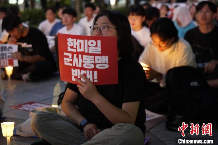 18日晚間,韓國民間團體“停戰(zhàn)70年朝鮮半島和平行動”在首爾光化門廣場附近舉行燭光集會,抗議韓美聯(lián)合軍演,反對韓美日加強軍事合作。