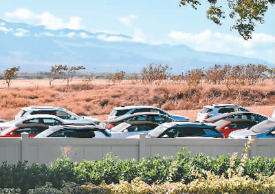 8月24日,美國(guó)夏威夷毛伊島卡胡盧伊機(jī)場(chǎng)外的一片空地上停放著租車公司沒有租出去的汽車。