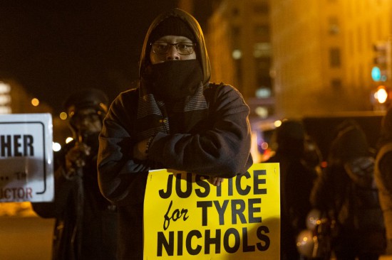 1月27日,在美國首都華盛頓,人們在白宮前抗議非洲裔男子泰爾·尼科爾斯遭警察毆打身亡。新華社發(fā)(亞倫攝)