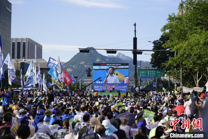 9月2日下午,韓國在野黨與市民團(tuán)體在首爾市中心再次舉行大規(guī)模集會,強(qiáng)烈要求日本政府停止福島核污染水排海行為。圖為集會現(xiàn)場?!≈行律缬浾?劉旭 攝