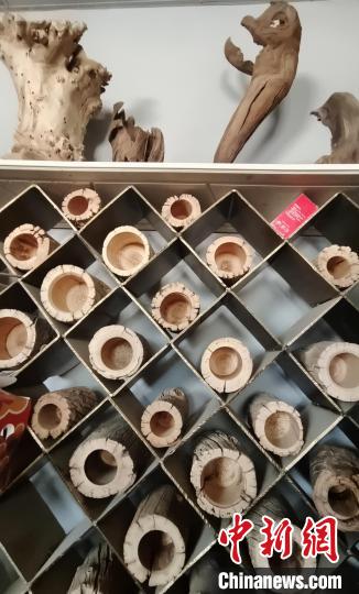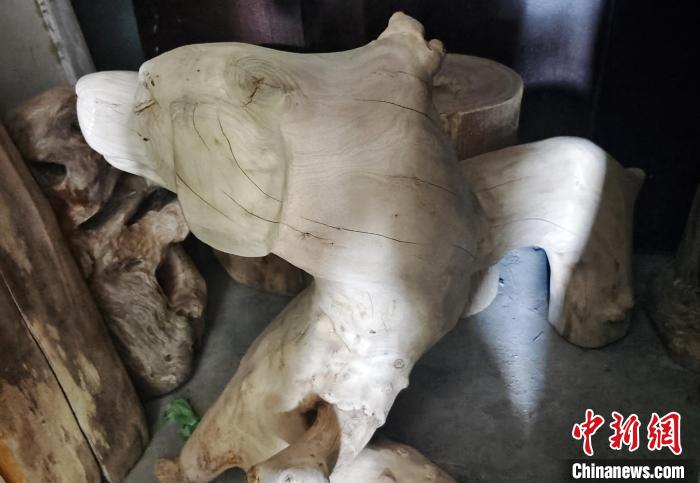 在位于新疆阿拉爾市的戴新根雕加工坊的大院內(nèi),擺放著一堆接一堆的各類待加工“材料”,從長二、三米的朽木、樹根,到僅有幾十厘米長的各種樹枝,至少能裝滿幾輛貨車。中新網(wǎng)記者注意到,偌大的廠房式加工“車間”內(nèi),各類正在加工的半成品約有幾十件。在左側(cè)相鄰的“車間”內(nèi),存放著20世紀(jì)70年代前后的字畫、木箱、電影放映機、音樂播放機……
