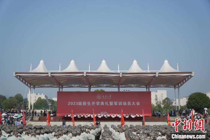 中新網(wǎng)重慶9月3日電 (記者 鐘旖)重慶大學(xué)2023級(jí)本科生開學(xué)典禮暨軍訓(xùn)動(dòng)員大會(huì)3日在校內(nèi)舉行。重慶大學(xué)校長(zhǎng)、中國(guó)工程院院士王樹新為來(lái)自五湖四海的新生帶來(lái)“開學(xué)第一課”。