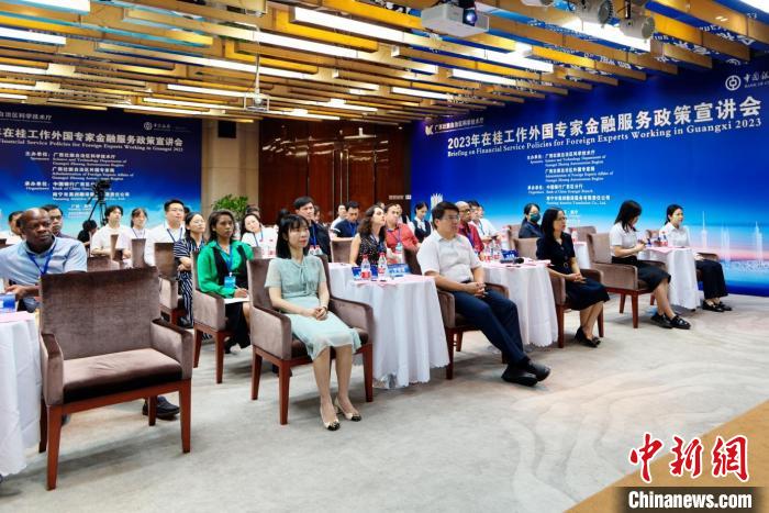 中新網(wǎng)南寧9月3日電(鄧卓媛 楊陳)9月2日,由廣西壯族自治區(qū)科技廳(外國專家局)主辦的“2023年在桂工作外國專家金融服務(wù)政策宣講會”在南寧舉行。來自法國、加拿大、巴基斯坦、泰國、埃及、馬來西亞、尼日利亞等13個國家近20名在桂工作外國專家參加了此次活動。