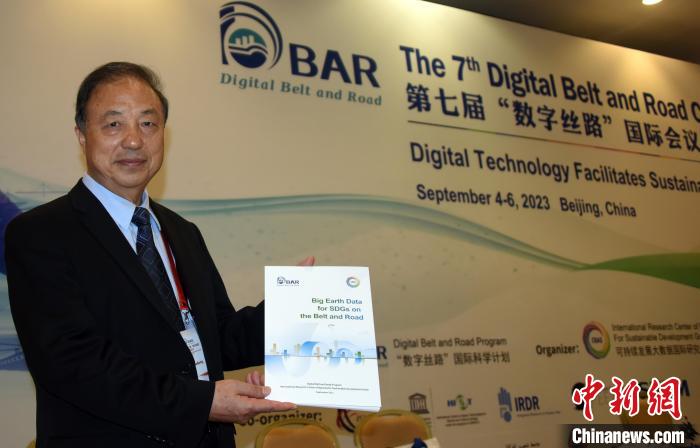 9月4日,第七屆“數(shù)字絲路”國(guó)際會(huì)議在北京開幕,DBAR主席郭華東院士展示當(dāng)天最新發(fā)布的《地球大數(shù)據(jù)助力“一帶一路”可持續(xù)發(fā)展》報(bào)告。中新網(wǎng)記者 孫自法 攝
