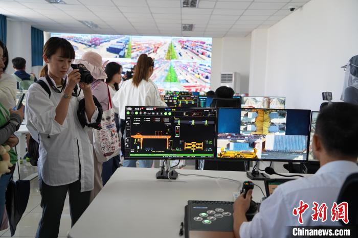 “像抓娃娃一樣”“操作桿仿佛游戲手柄”......看著工作人員在電腦上遠(yuǎn)程操控自動化龍門吊,多位臺灣媒體人感慨,“黑科技”讓操控數(shù)噸重的集裝箱舉重若輕。