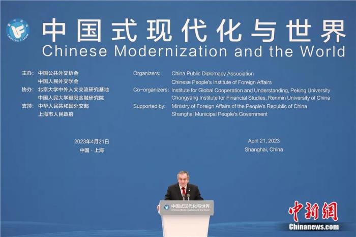 2023年4月21日,“中國(guó)式現(xiàn)代化與世界”藍(lán)廳論壇在上海“世界會(huì)客廳”舉辦,沙拉夫出席論壇開(kāi)幕式并致辭。殷立勤 攝