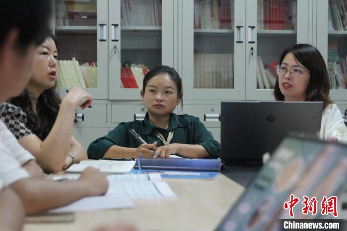 9月7日,在成都紡織高等專科學(xué)校,“輪椅女孩”張曉麗(右二)與其無(wú)障礙服裝團(tuán)隊(duì)探討。王利文 攝